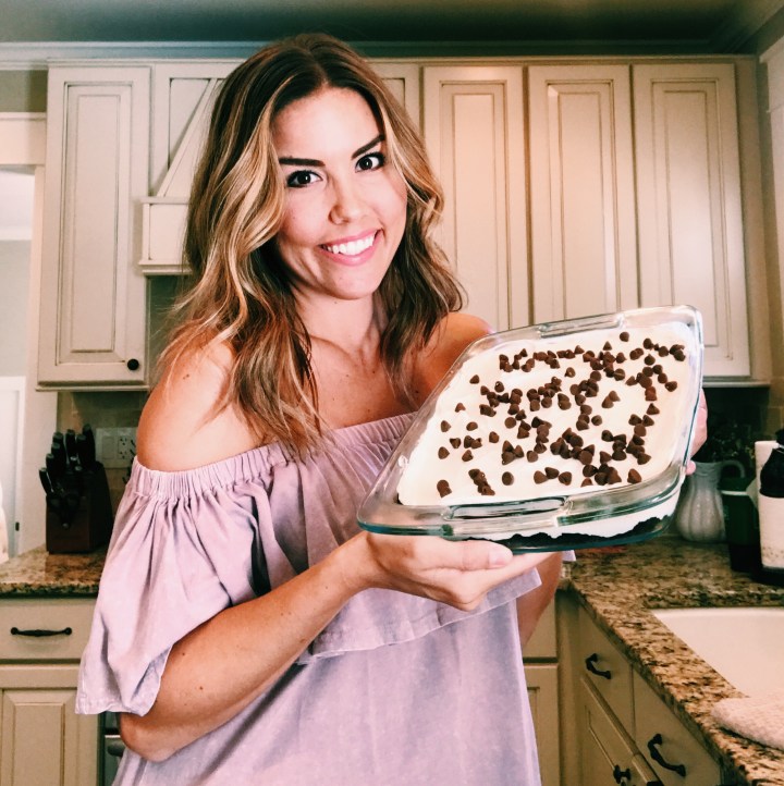 Now, before your mind goes to weird places that include marinara sauce and chocolate chips mixed together, let me just say STOPPP. No, this dish doesn’t call for marinara sauce, and it’s ten times better than normal lasagna. That’s because it’s a mixture of ten kinds of wonderful. Oreos, Cool Whip, cream cheese, sugar… just to name a few.