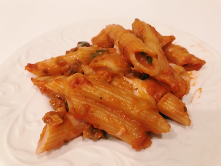 We love eating Italian dishes at my house, especially my mom’s “pink pasta,” which is packed with flavor. While consuming it, you might think it requires a lot of time spent in the kitchen due to a homemade vodka-like sauce, but it’s quite the opposite. It’s not only delicious but ridiculously easy to make. [With no homemade sauce.] It’s so easy that I almost hate revealing the recipe…