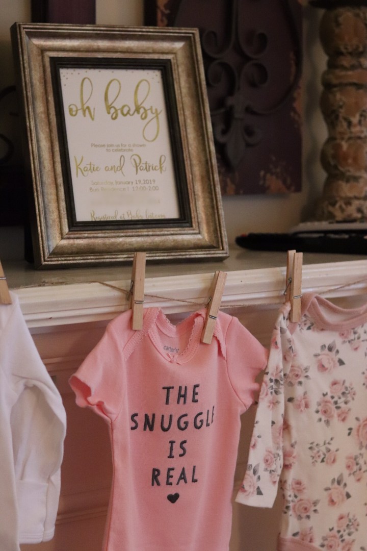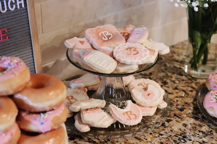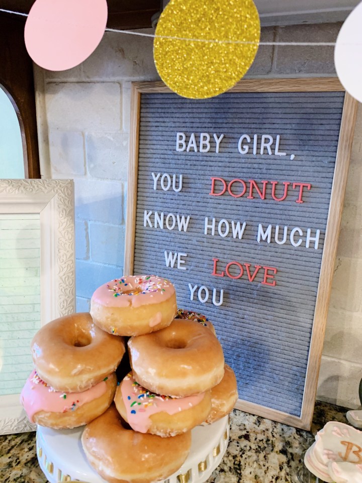 Some of the details included Krispy Kreme doughnuts [my fav], personalized baby cookies, a onesie banner along the fireplace, delicious food, and beautiful flowers.