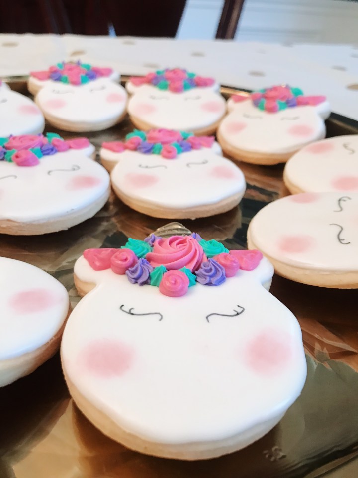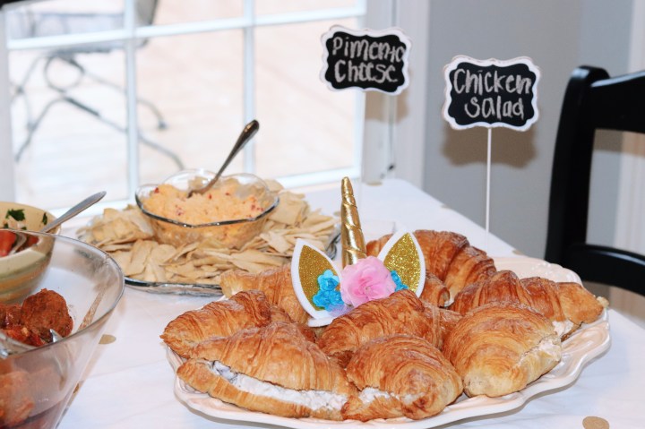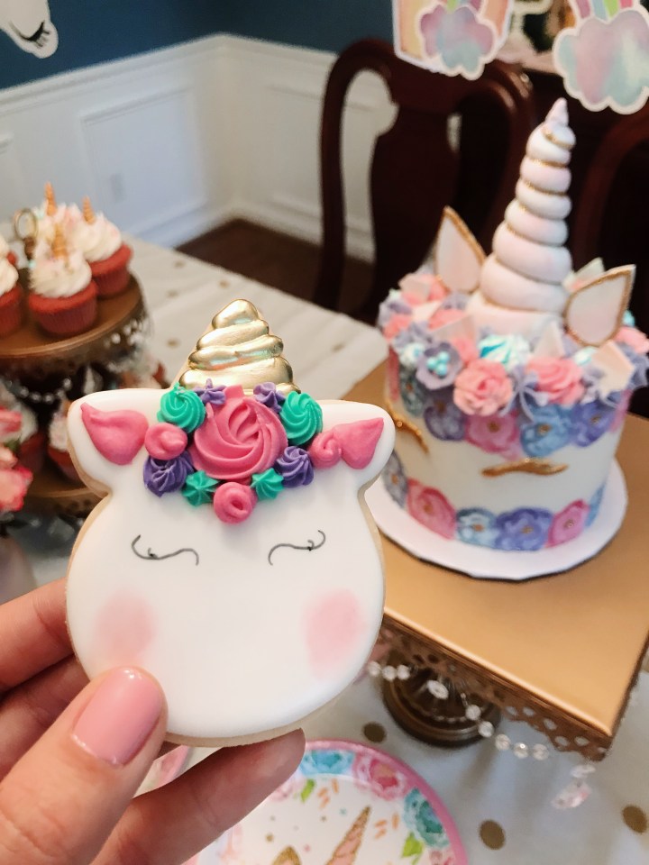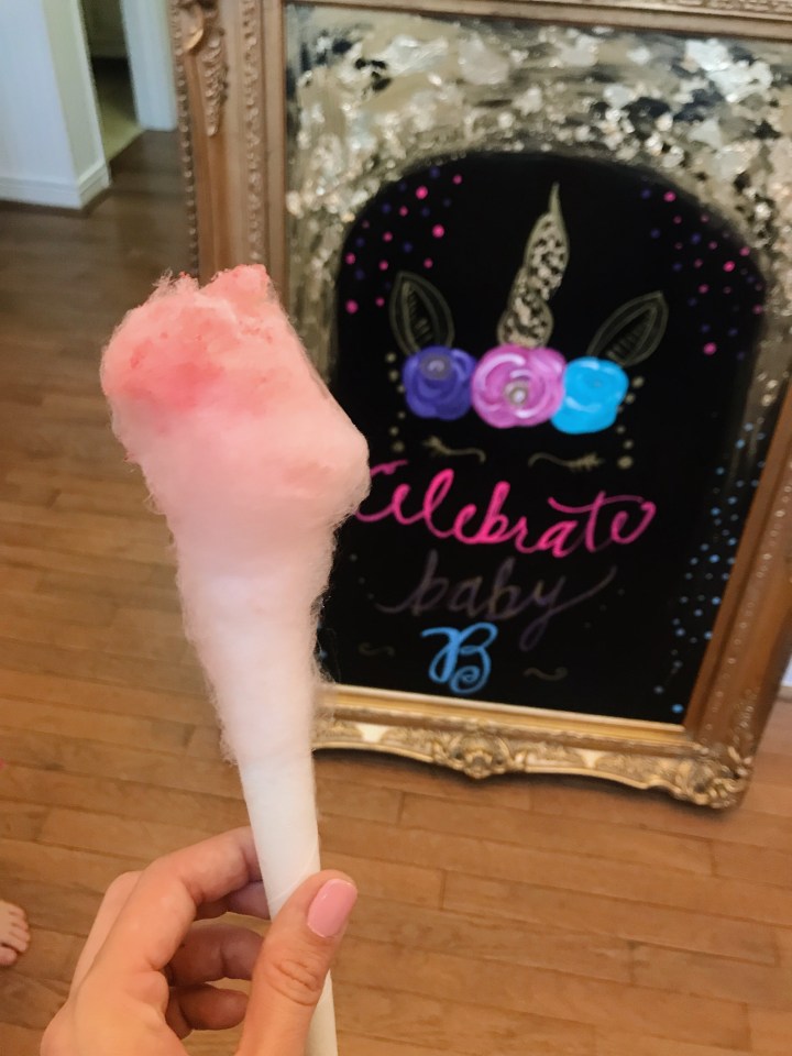 Some of the shower decorations included an epic diaper cake, a cotton candy machine, delicious food, beautiful flowers, and adorable cupcakes and cookies – oh and a unicorn cake that was almost too magical to cut in to. ALMOST. I’m glad we did, though, because if you’ve never had a cake from Miss Mamie’s in Marietta, you’re truly missing out.