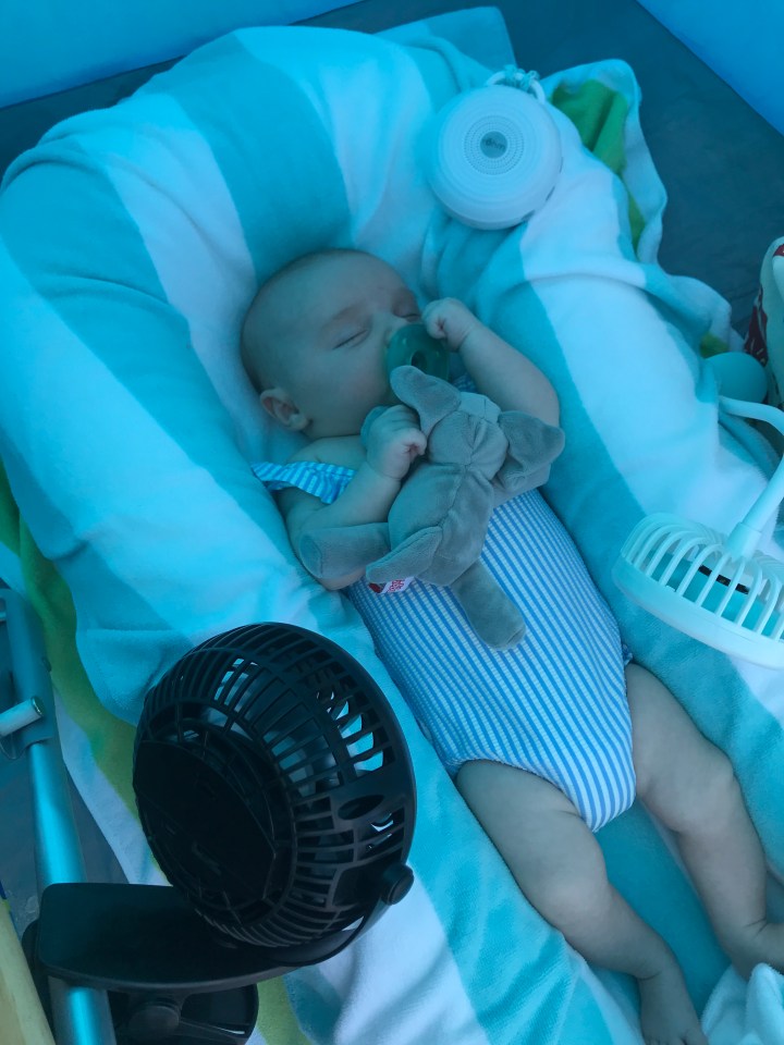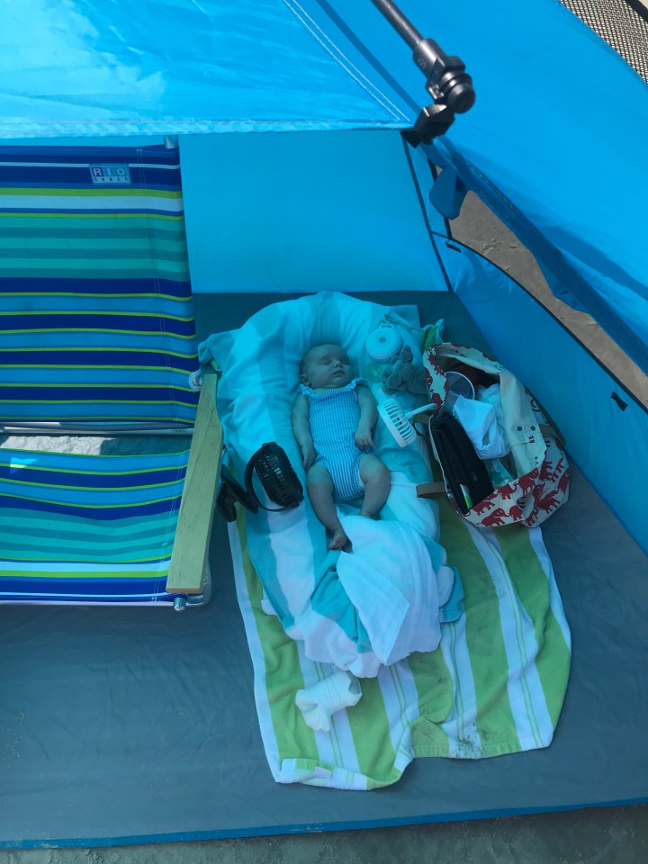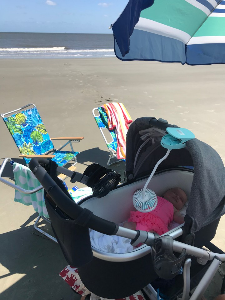 You NEVER know how a baby is going to react to a beach setting. It’s hot, often breezy, and chances are what works one day won’t necessarily work the next. Brooklyn did GREAT on the first and second day, was extremely fussy on day three, took day four off from the beach, then did okay on the final two days. We used several items throughout the week for Brooklyn to “chill out” on while we were at the beach, including the travel bassinet listed above, her DockATot, her carseat, and her UppaBaby bassinet that attaches to her stroller. She’s a little high maitenance and actually did the best at the beach when someone was holding her. You’ll just have to figure out what works best for your little one!