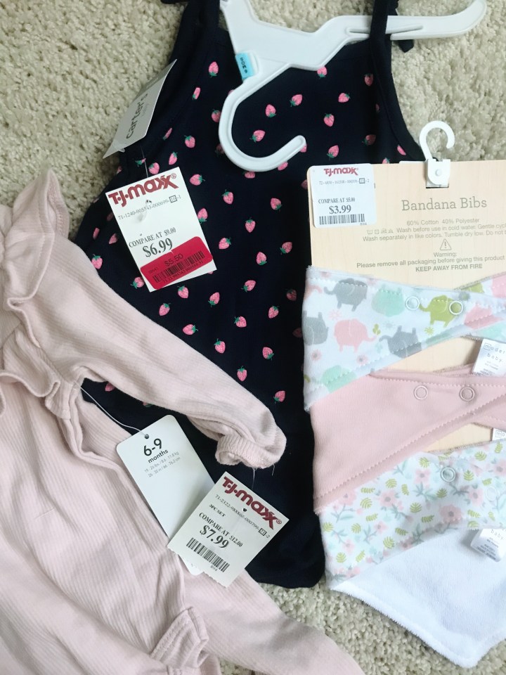 Here’s the thing about babies. They have no clue where all of their clothes, toys, bibs, etc., come from. So, why on earth would you spend an obscene amount of money on those things? Sure, I splurge here and there, but for the most part, I depend on places like T.J.Maxx. Not only are the prices incredible and the items are on-trend, but they also have designer and brand names.