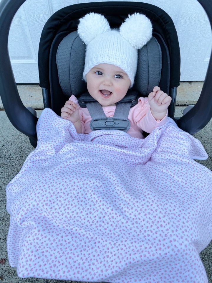 Back to dressing your child properly for car rides… The NHTSA recommends light layers, such as a thin fleece, instead of puffy materials. This ensures a snug-fitting harness.